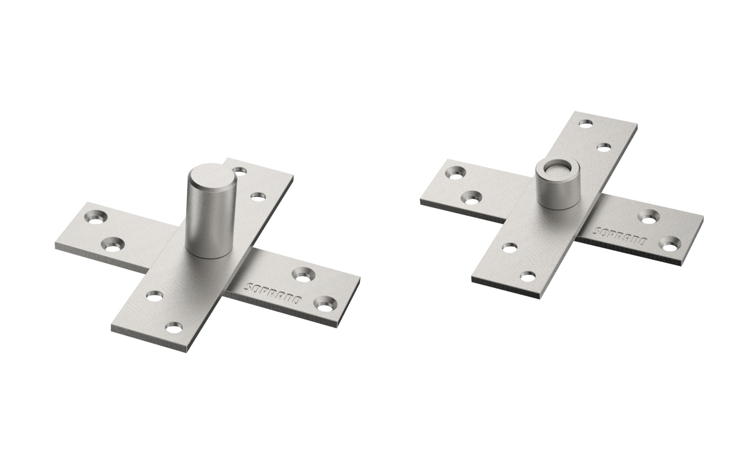 E essa praticidade e suavidade na abertura são possíveis com as dobradiças pivotantes com esfera, que cumprem com a função essencial de girar em torno de um eixo vertical e abrange também pinos de fixação em cima e embaixo. Dessa forma, permitindo uma abertura mais suave e com a segurança de um material de alta resistência.