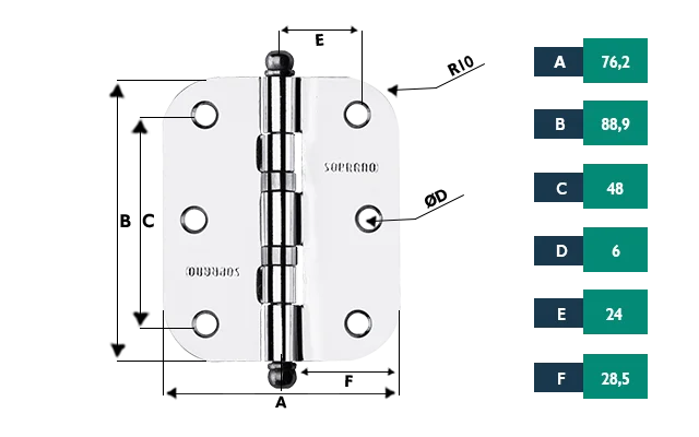 É importante salientar que todas as dobradiças Soprano estão de acordo com as normas técnicas estabelecidas para o produto no país.