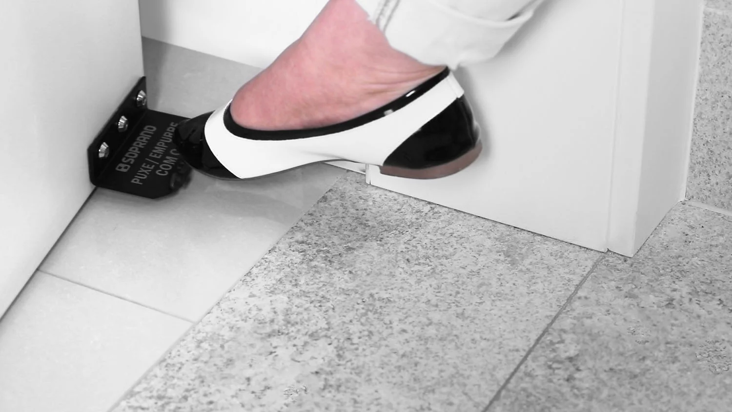 Já conhece o Puxa-Porta com pé Soprano? Esta é uma novidade que desenvolvemos pensando na sua segurança e bem-estar. Com ele, é possível abrir portas sem ter contato algum com a maçaneta. Basta pisar e puxar!