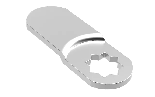 LINGUETA com furo estrela de 7,6 com dobra de 1,5 x 39 mm.