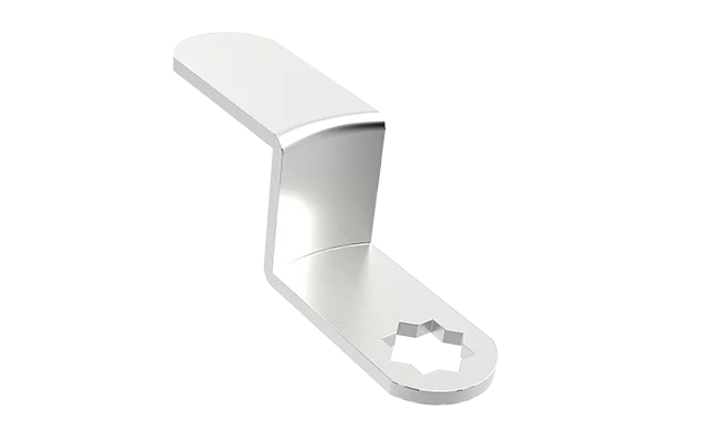 LINGUETA com furo estrela de 7,6 com dobra de 18x59 mm.