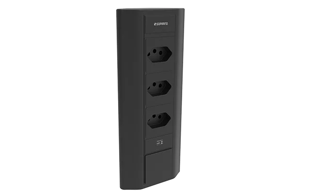 A Caixa de Tomadas de Sobrepor da Soprano, com acabamento preto e 3 módulos de energia, é a solução ideal para integrar funcionalidade em mesas, balcões e superfícies de diferentes ambientes — como escritórios, cozinhas, home office e muito mais.