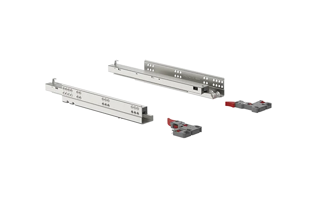 São instaladas na parte inferior da gaveta, sem ferragens aparentes, conferindo ao móvel um toque de elegância e uma sensação de que a gaveta está "flutuando". Além disso, os gatilhos de travamento permitem que a gaveta seja retirada e reposicionada com facilidade, segurança e com regulagem 2D.