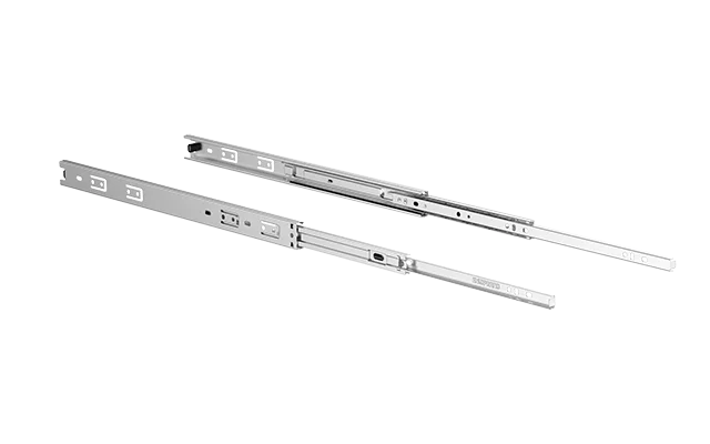 As corrediças telescópicas slim da Soprano são compactas e fáceis de instalar. Proporcionam o deslizamento suave e silencioso, além de permitir a abertura total da gaveta.