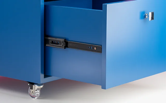 Contam com travas de segurança que impedem a queda da gaveta quando aberta totalmente.