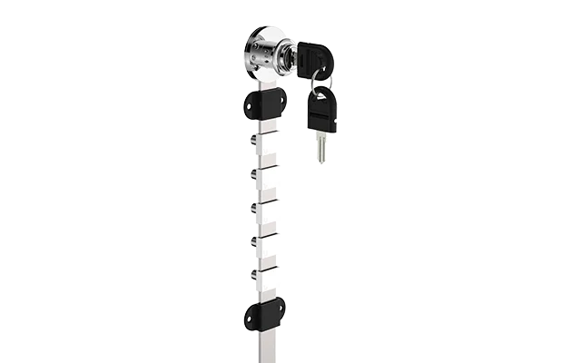 Proporciona segurança e praticidade, pois com um único fechamento é possível travar 4 gavetas.