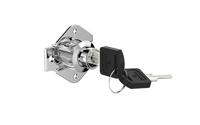 A FECHADURA PARA ARMÁRIO modelo 0871 possui 22mm de comprimento do cilindro, chave capa plástica, rotação de 180º e 2 pontos de extração da chave.