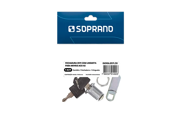 KIT de fechadura para móveis de aço em embalagem autosserviço da Soprano conta com: