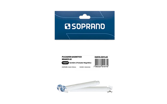 Pulsador Magnético branco da Soprano em embalagem autosserviço com 2 unidades.