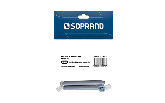 Pulsador Magnético cinza da Soprano em embalagem autosserviço com 2 unidades.