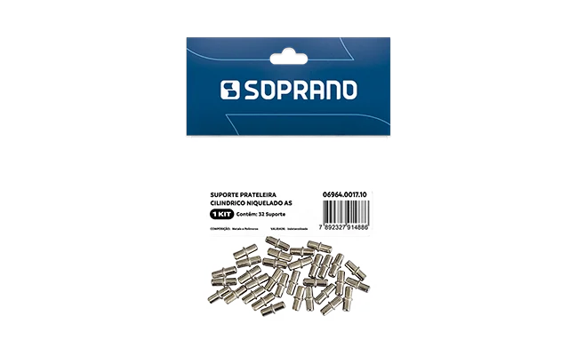 Suporte prateleira cilíndrico da Soprano em embalagem autosserviço com 32 unidades.