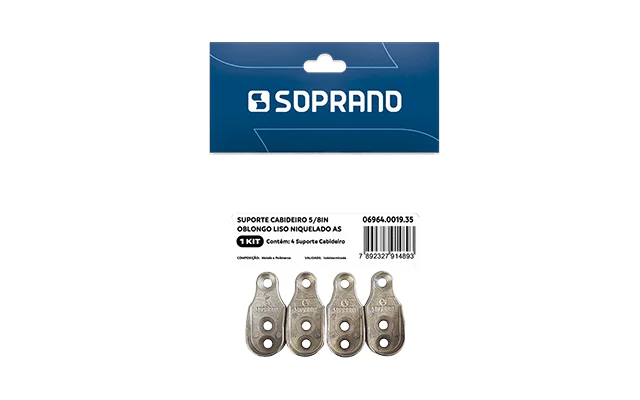 Suporte cabideiro 5/8IN oblongo liso da Soprano em embalagem autosserviço com 4 unidades.