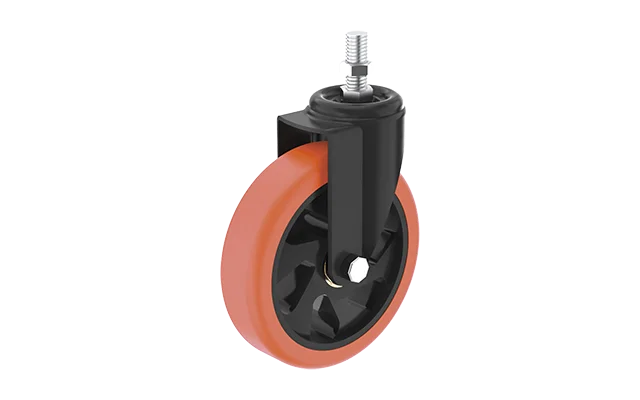 Com pino rosca giratório, indicado para aplicações em espaços onde o rodízio com chapa giratória não suporta, como carrinhos, macas, entre outros.