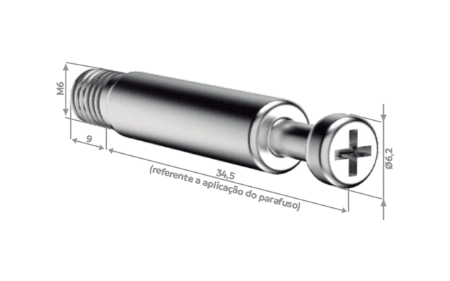- Parafuso rosca M6 métrica com 6mm de diâmetro.
