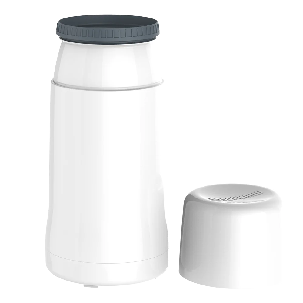 Garrafa Térmica de 250 ml com ampola de vidro, design compacto, livre de Bisfenol (BPA Free). Ideal para o seu público que necessita armazenar líquidos quentes ou frios em bolsas e mochilas. Garrafa térmica ainda possui tampa que pode ser utilizada como copo.