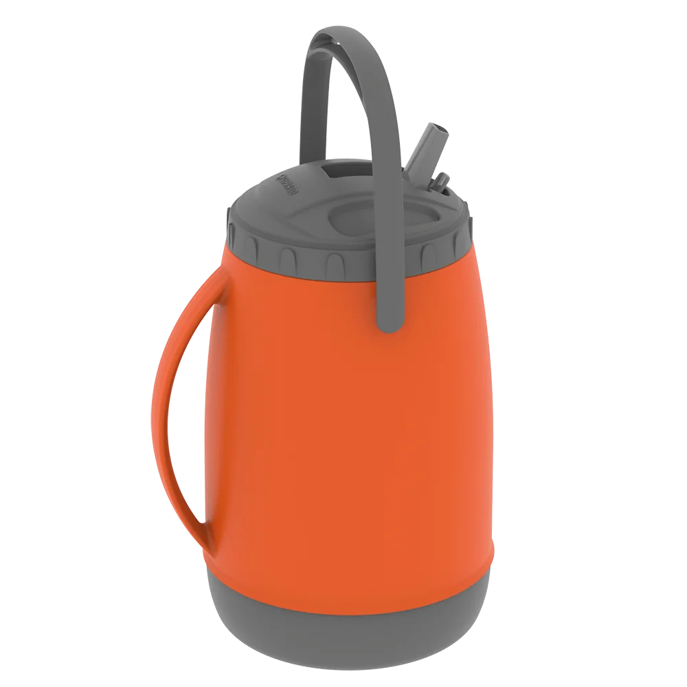 Garrafa Isotérmica 2,5L com alça para transporte, sistema de bico retrátil e higiênico, alça para servir e isolamento térmico em Poliuretano (PU). Garrafa isotérmica ideal para manter bebidas geladas em acampamentos, pescarias, praias e viagens, seja para água, suco ou tereré. Produto livre de bisfenol (BPA Free), indicado para o uso com líquidos frios. A opção ideal para os seus clientes que buscam por praticidade e durabilidade.