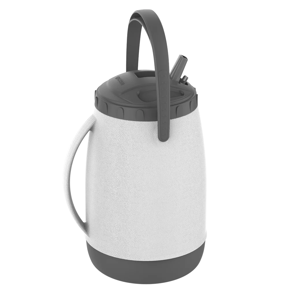 Garrafa Isotérmica 2,5L com alça para transporte, sistema de bico retrátil e higiênico, alça para servir e isolamento térmico em Poliuretano (PU). Garrafa isotérmica ideal para manter bebidas geladas em acampamentos, pescarias, praias e viagens, seja para água, suco ou tereré. Produto livre de bisfenol (BPA Free), indicado para o uso com líquidos frios. A opção ideal para os seus clientes que buscam por praticidade e durabilidade.