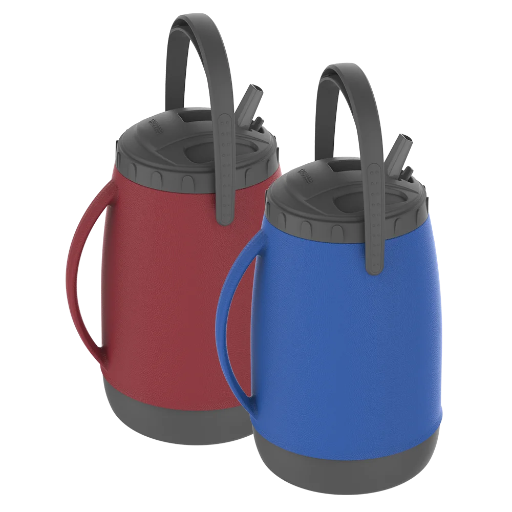 Garrafa Isotérmica 2,5L com alça para transporte, sistema de bico retrátil e higiênico, alça para servir e isolamento térmico em Poliuretano (PU). Garrafa isotérmica ideal para manter bebidas geladas em acampamentos, pescarias, praias e viagens, seja para água, suco ou tereré. Produto livre de bisfenol (BPA Free), indicado para o uso com líquidos frios. A opção ideal para os seus clientes que buscam por praticidade e durabilidade.