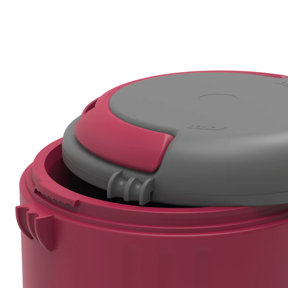 A mais tradicional e popular marmita do mercado, atendendo suas necessidades na medida certa. Muito utilizado em ambientes corporativos, construção civil, agricultura ou até mesmo no dia a dia para buscar comida em restaurantes. Conserva os alimentos em temperatura ideal para consumo. Acabamento robusto de alta qualidade, sistema de fechamento por rosca de encaixe, possui alça retrátil para transporte. Disponível sem divisão interna e com divisão interna dupla. Capacidade 1,3 litros; isolamento térmico em Poliuretano (PU). Livre de Bisfenol (BPA Free). Pode ser utilizado no microondas (sem a tampa).