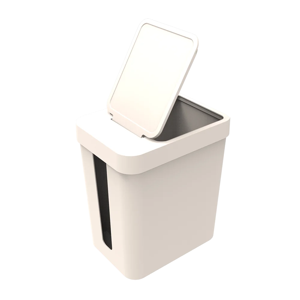 Design moderno e funcional para combinar com diversos tamanhos de cozinha. Porta-sacos: Possui compartimento especial para guardar sacolas plásticas. Encaixe nas laterais: para fixar as sacolas plásticas, durante o uso. Aba maior: para facilitar a entrada da mão, durante o uso. Tampa Open/ Stop: Mantém a tampa aberta quando necessário.