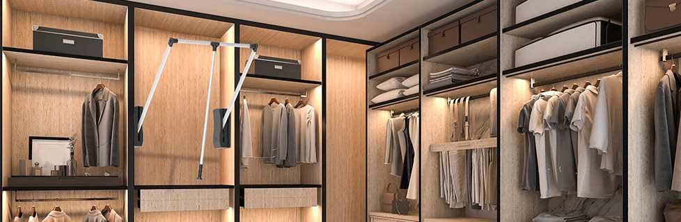 O cabideiro basculante gera benefícios em termos de organização e melhor aproveitamento dos móveis.