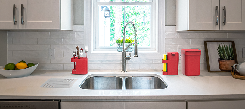 Além disso, aqui entra a mesma dica do banheiro: mantenha a casa organizada deixando apenas o essencial em cima da bancada. Caso seu cliente tenha dificuldades, recomende produtos que facilitem na arrumação do cômodo. Por exemplo, dispenser e porta-talheres.