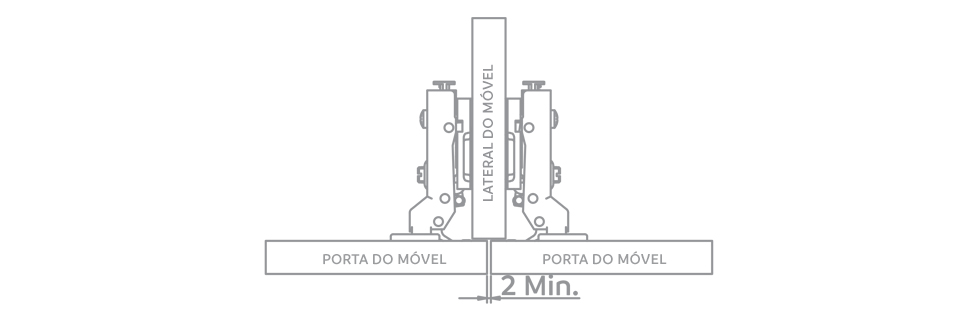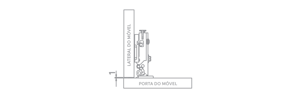 Dessa forma, a porta fica diante do lado do corpo do móvel, deixando uma folga mínima suficiente para garantir a abertura da porta com segurança.