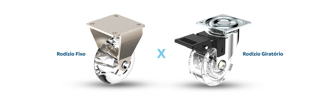 Rodízios giratórios são ideais para uso intenso, enquanto os fixos são para trajetos lineares.