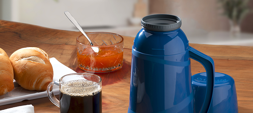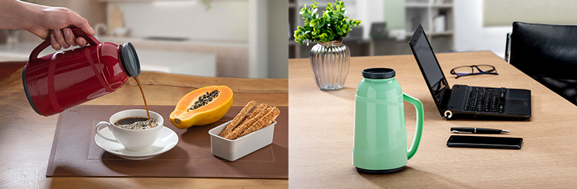 Disponível em 7 opções de cores - preta, vermelha, verde, rosa, fendi, branca, azul – a garrafa térmica Cristal 500ml é o modelo perfeito para quem adora ter sempre por perto aquele cafezinho ou chá quentinho.