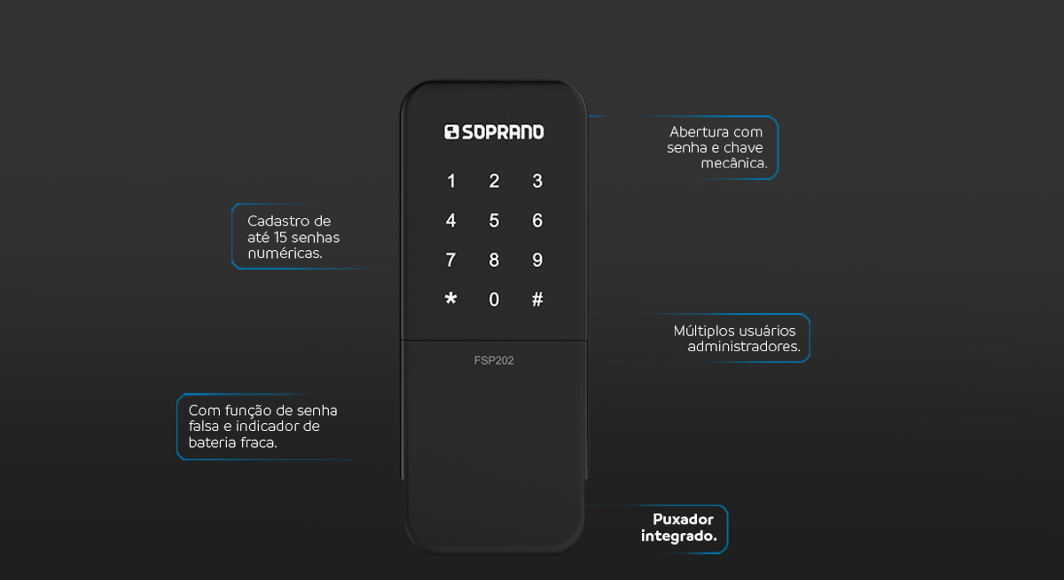 Na Soprano, estamos sempre atentos às necessidades do mercado e em constante busca por soluções que unam inovação, praticidade e segurança. É com esse compromisso que anunciamos o lançamento da fechadura digital de sobrepor FSP202.