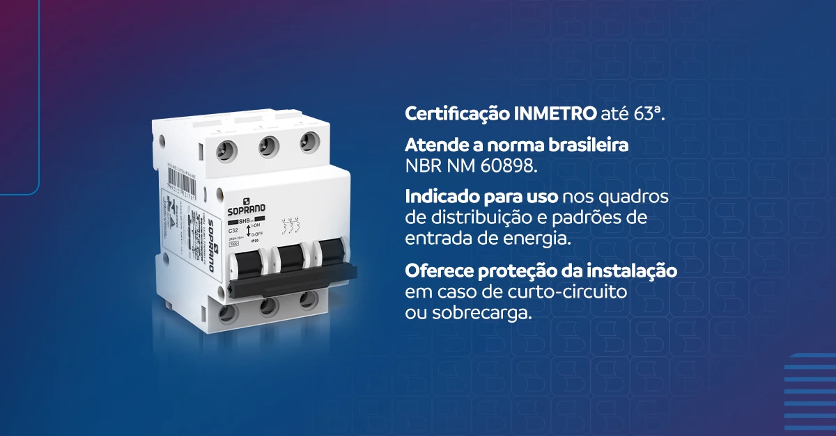 Enfim, com certificação INMETRO até 63A, os disjuntores ou minidisjuntores SHB atendem a norma brasileira NBR NM 60898 e estão sempre presentes nas instalações. Indicados para uso nos quadros de distribuição e padrões de entrada de energia, proporcionam alta performance, proteção e segurança para seus clientes.