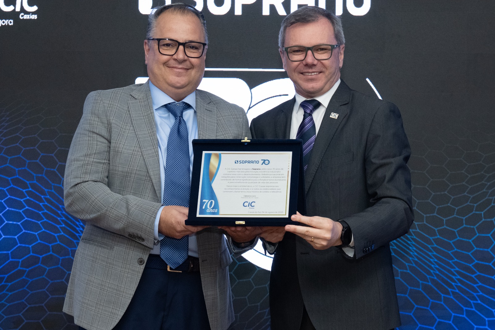 Em celebração aos seus 70 anos de história, a Soprano marcou presença na Reunião-Almoço da Câmara de Indústria, Comércio e Serviços de Caxias do Sul (CIC Caxias), realizada no dia 4 de agosto, no Restaurante SICA. O encontro reuniu cerca de 300 pessoas, entre empresários, autoridades, clientes e parceiros, em um momento de reconhecimento à trajetória da empresa e de reflexão sobre o futuro dos negócios sustentáveis.