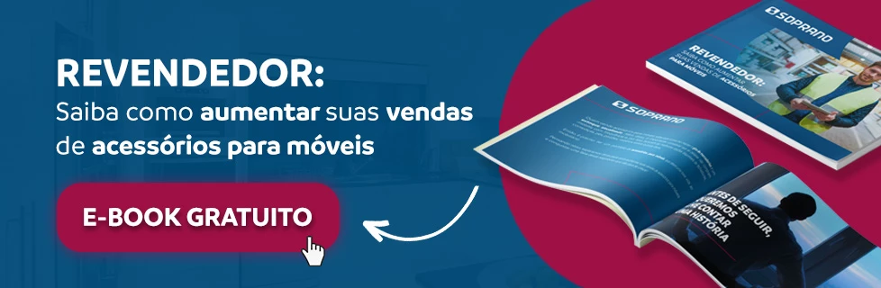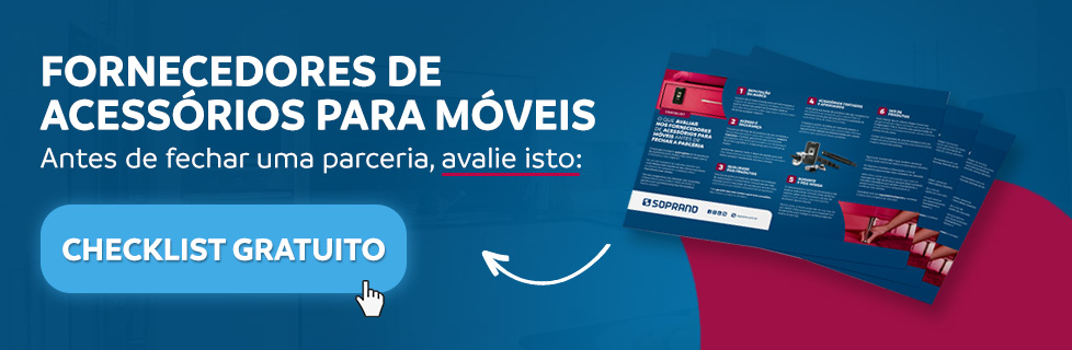 Esses números comprovam a importância de outro setor: o de venda de acessórios para móveis. Afinal, para que esses móveis sejam finalizados, é necessário utilizar peças como fechaduras, corrediças, pés, pistão, rodízios, e muito mais. Ter esses produtos no estoque ajuda a manter um bom giro de mercadorias, aumento do lucro e do valor agregado do seu negócio.