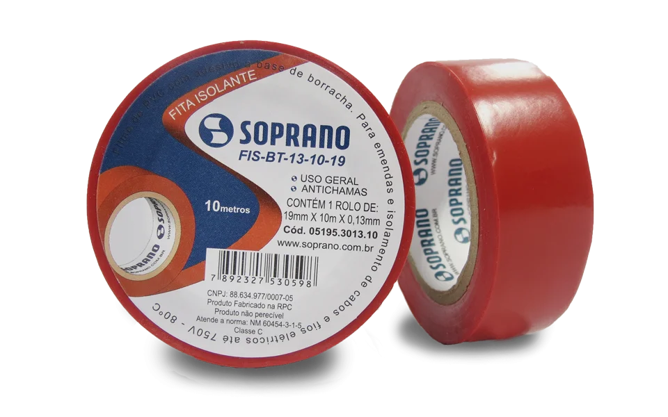 Excelente desempenho nas características de isolação elétrica, adesão, alongamento e durabilidade Fitas isolantes nas cores: preta, branca, amarela, vermelha, azul e verde