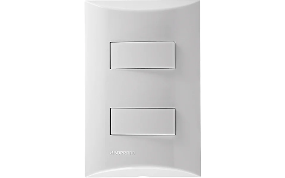 Conjunto 2 Interruptores Simples. Design inovador, fácil de instalar e limpar, com superfície em extra brilho e toque suave. Disponível na cor branco. Corrente de 10A e tensão 250V~. Produzido em material termorplástico de alta performance, com aditivo anti UV e anti poeira que auxilia na conservação do produto.