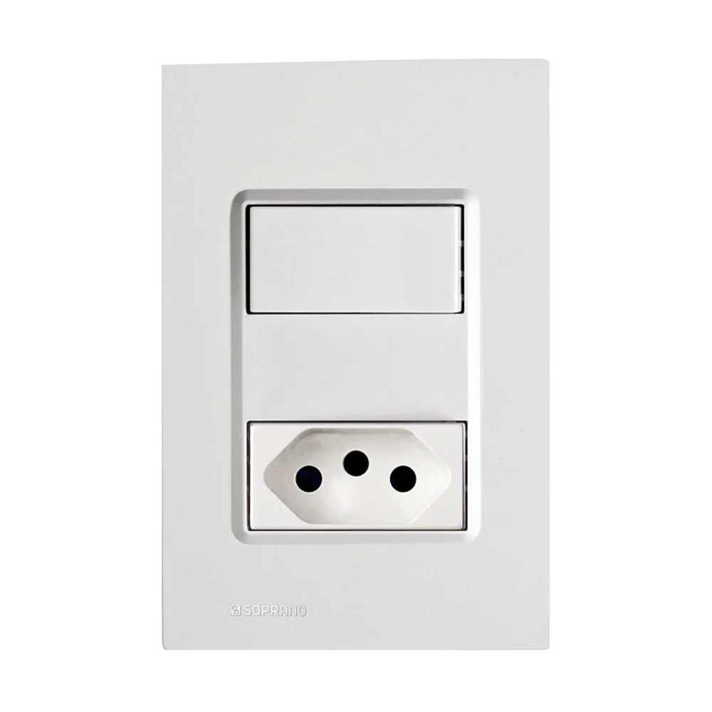 Conjunto 1 Interruptor Simples + 1 Tomada 2P+T 10A 250V~ Branco
