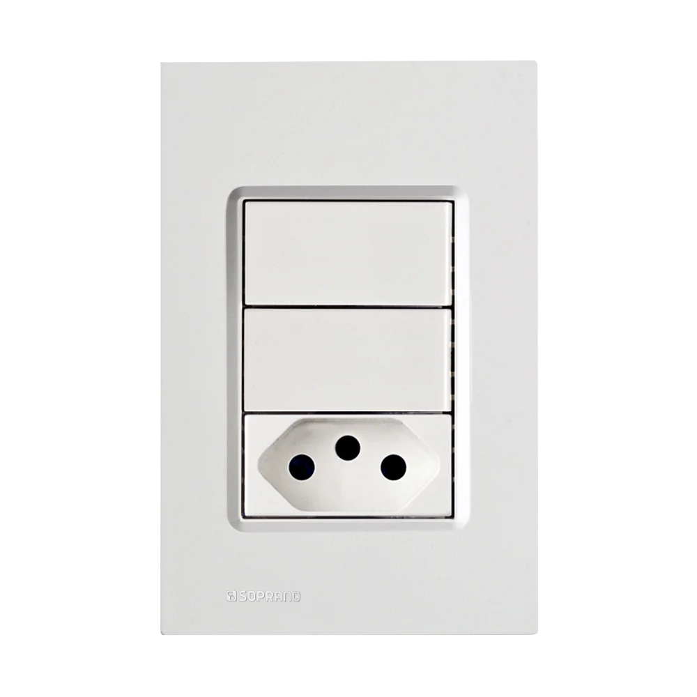 Conjunto 2 Interruptores Simples + 1 Tomada 2P+T 10A 250V~ Branco