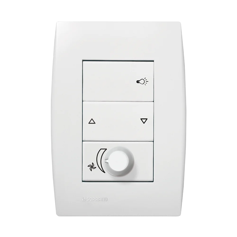 Conjunto Controle de Ventilador de Teto com 1 ponto para Luz Bivolt. Design clássico e clean que combinam com o seu estilo. Perfil mais fino com ausência de parafusos aparentes.Disponível na cor branco. Produzido em material termorplástico de alta performance, com aditivo anti UV e anti poeira que auxilia na conservação do produto.