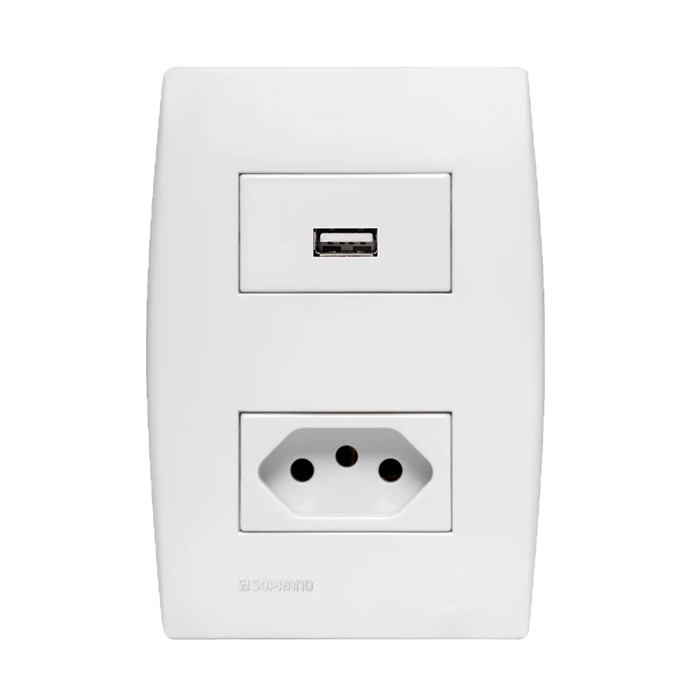Conjunto 1 Carregador USB + 1 Tomada NBR 10A