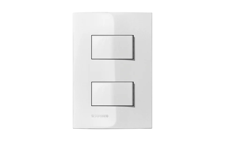 Conjunto 1 Interruptor Simples + 1 Interruptor Paralelo. Requinte e estilo! Disponível na cor branco. Corrente de 10A e tensão 250V~. Produzido em material termoplástico de alta performance, com aditivo anti UV e antipoeira que auxilia na conservação do produto.
