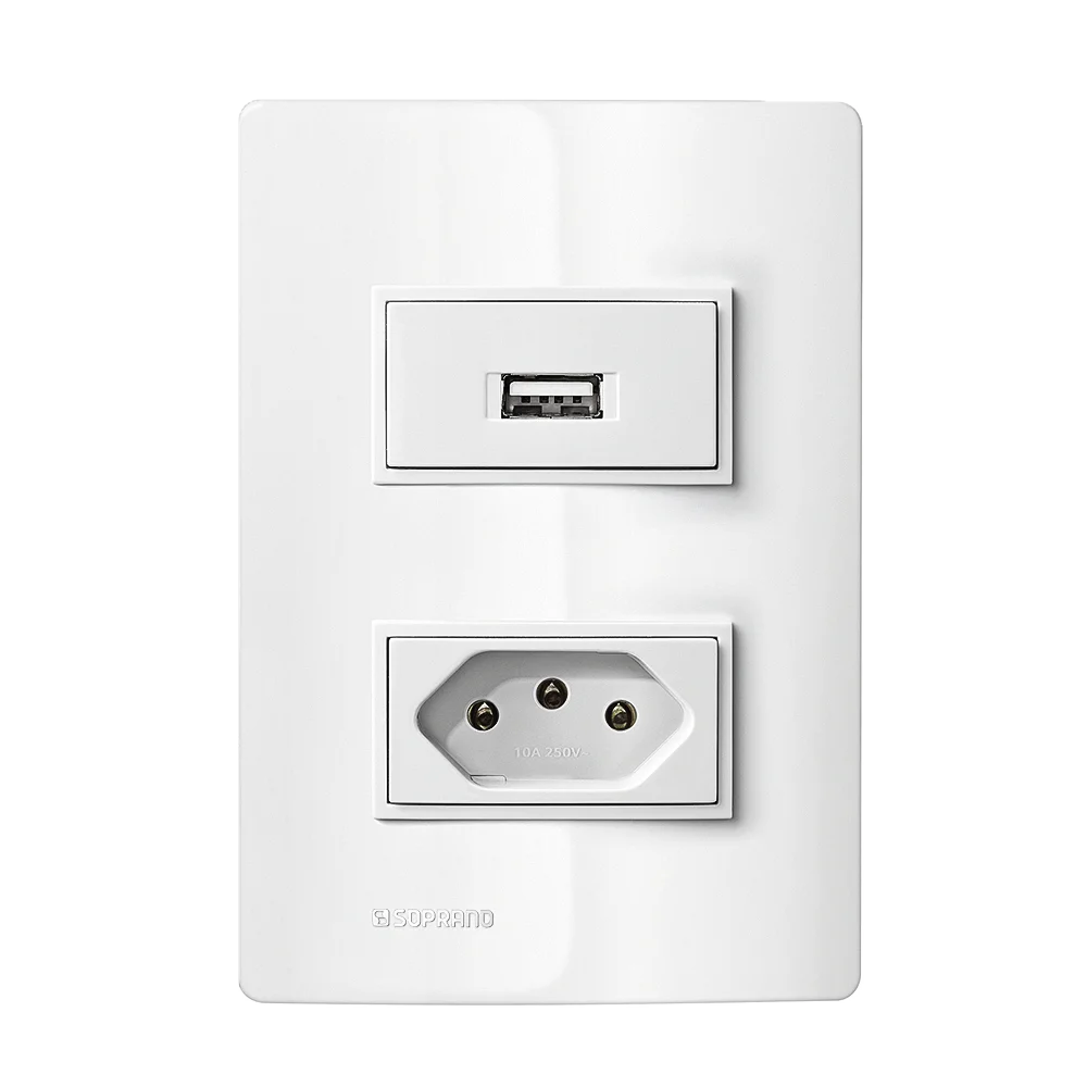 Conjunto 1 Tomada USB + 1 Tomada 10A