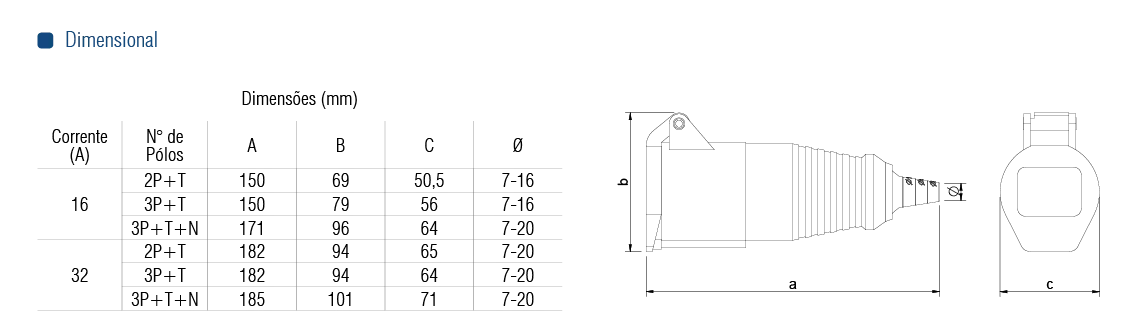 Construção: conforme norma NBR IEC 60309-1 e NBR IEC 60309-2.