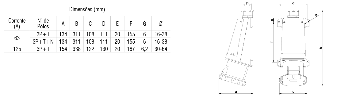 Construção: conforme norma NBR IEC 60309-1 e NBR IEC 60309-2.