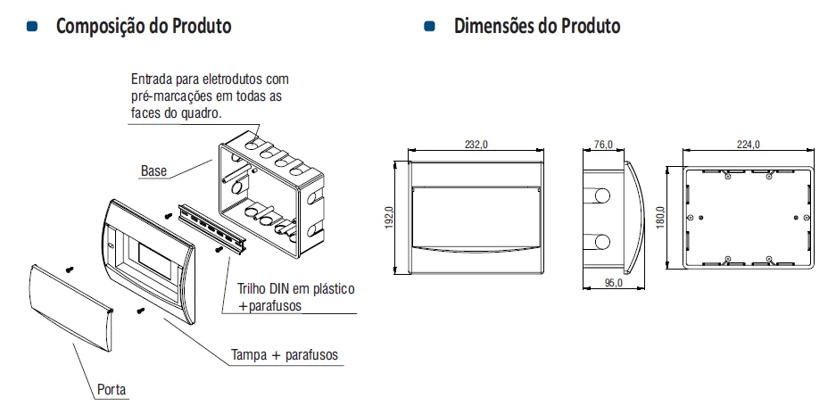 Tampa em PS auto extinguível proporcionando maior durabilidade e melhor acabamento