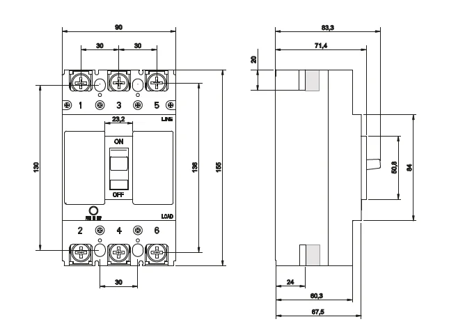 Corrente nominal - In(A): 70, 80, 90, 100, 125