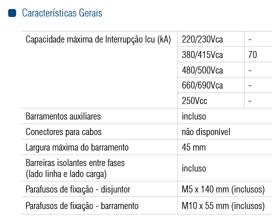 Capacidade de interrupção em serviço - Ics: 50% Icu