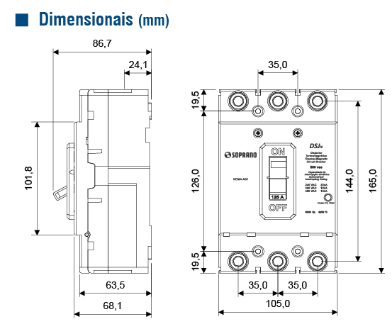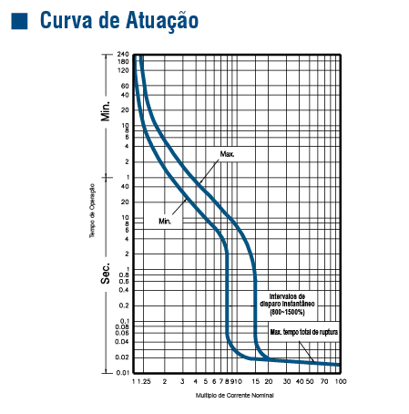 Corrente nominal - In(A) de 70, 80, 90, 100, 120,125, 150, 175, 200, 225 e 250