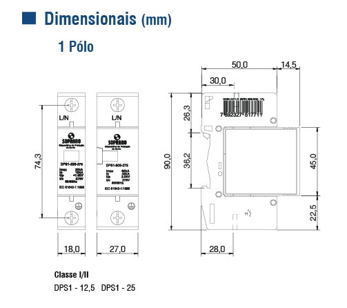 BT- DISP.PROT.SURTO 25/120KA CLASSE I/II DPS 1 05190.0006.01