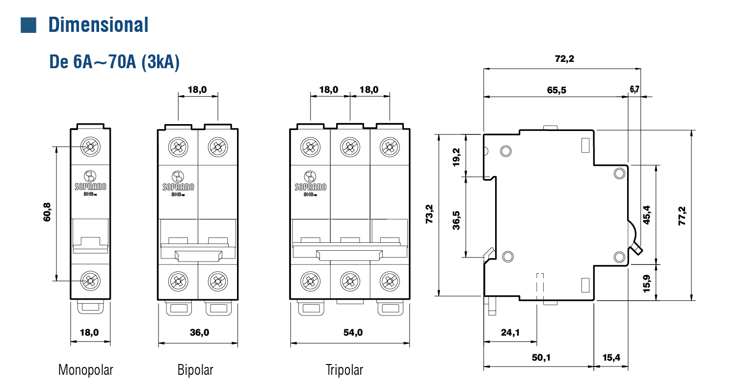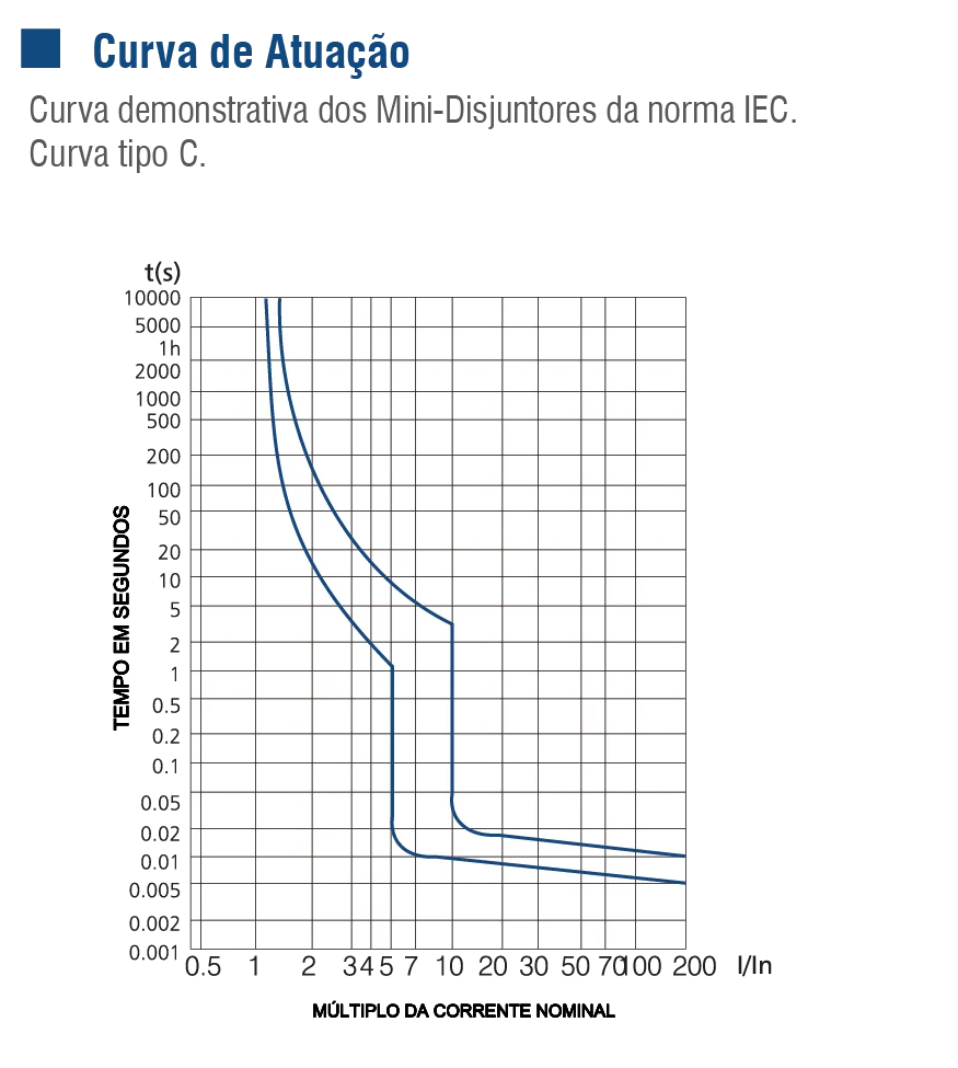 Corrente nominal - In(A) de 6, 10, 16, 20, 25, 32, 40, 50, 63, 70