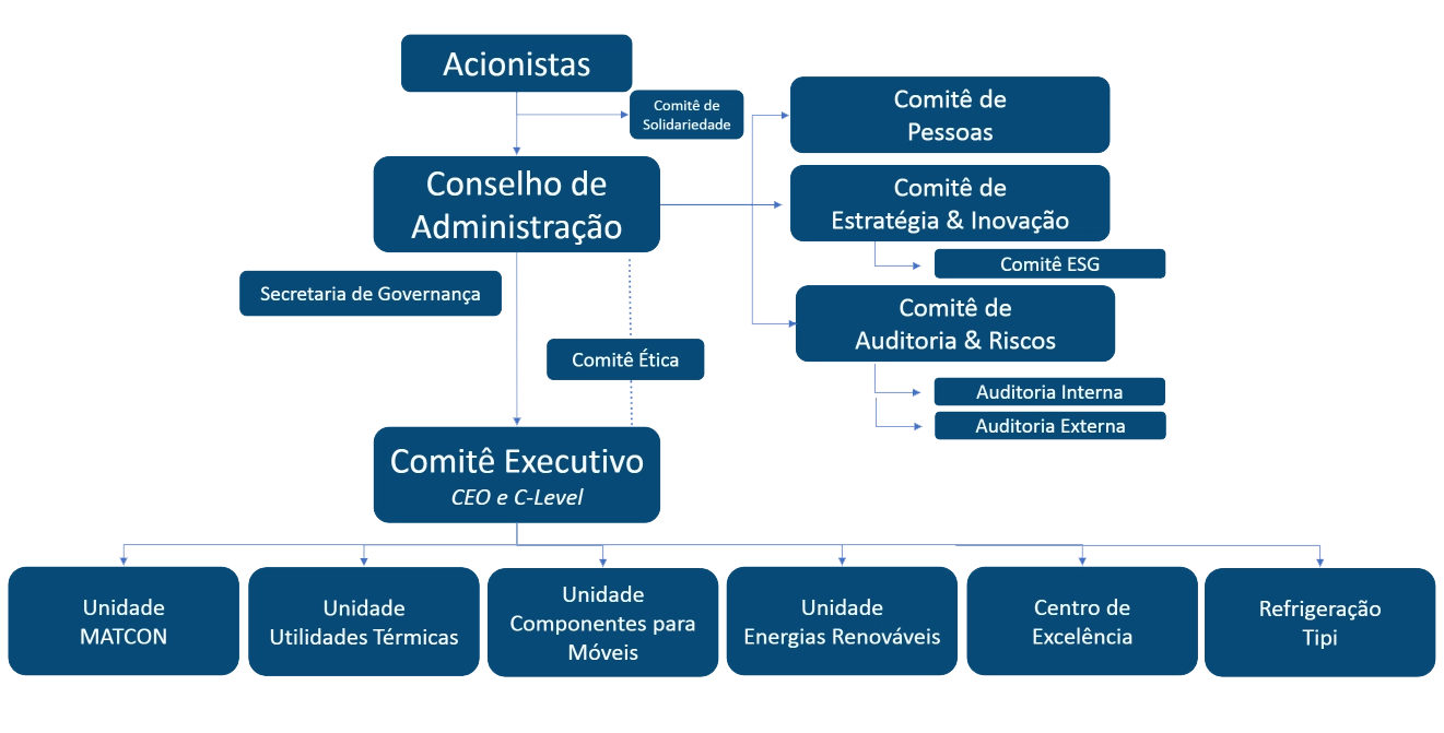 Apoia os acionistas e a gestão de forma pontual nas ações de solidariedade frente aos impactos climáticos ocorridos no Estado do Rio Grande do Sul, ajudando na reconstrução de comunidades e escolas em situação de vulnerabilidade ou necessidade.